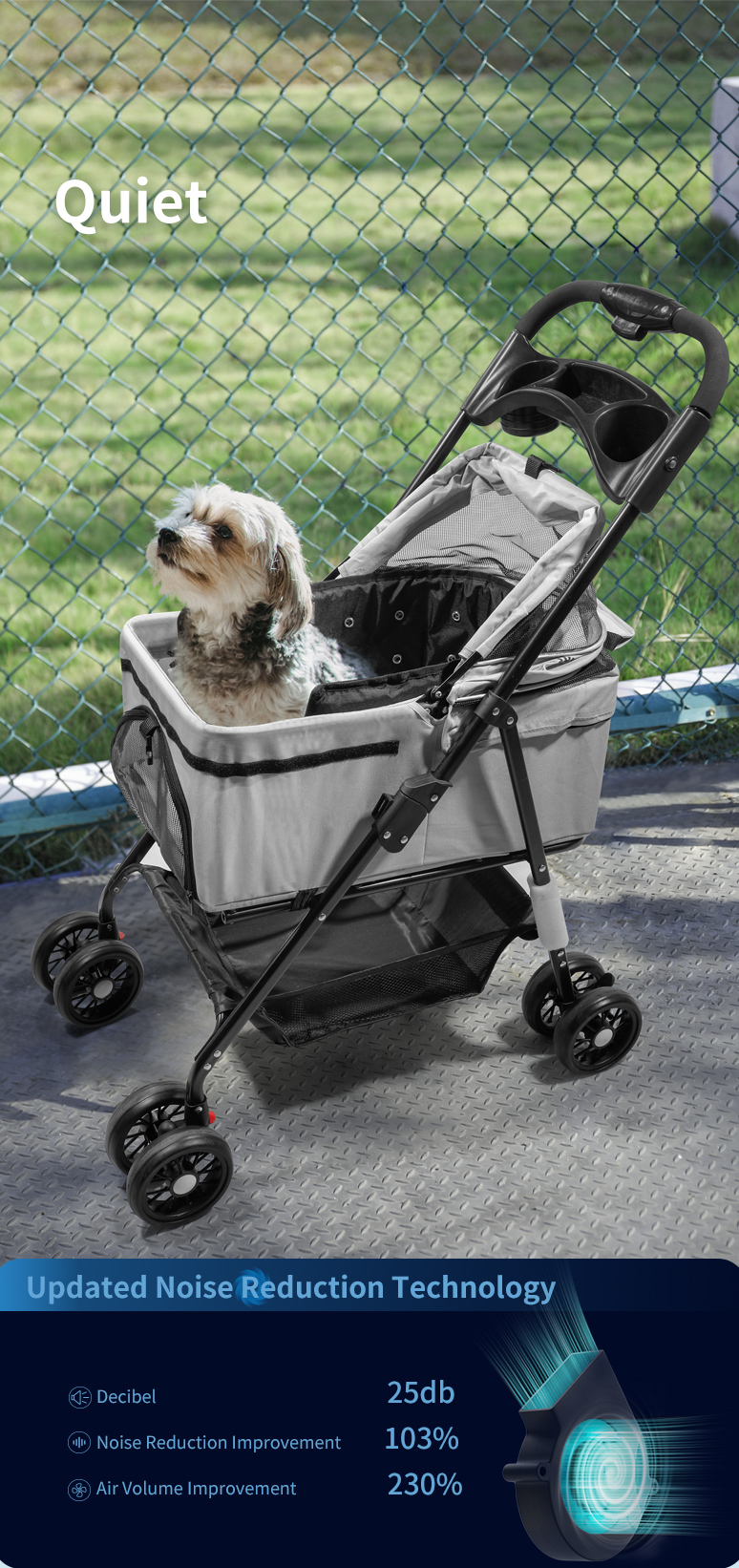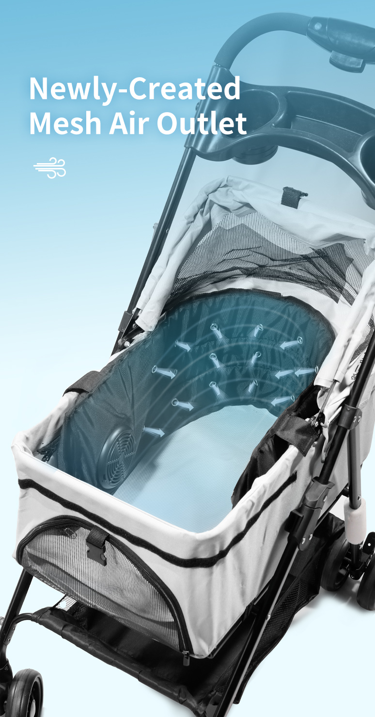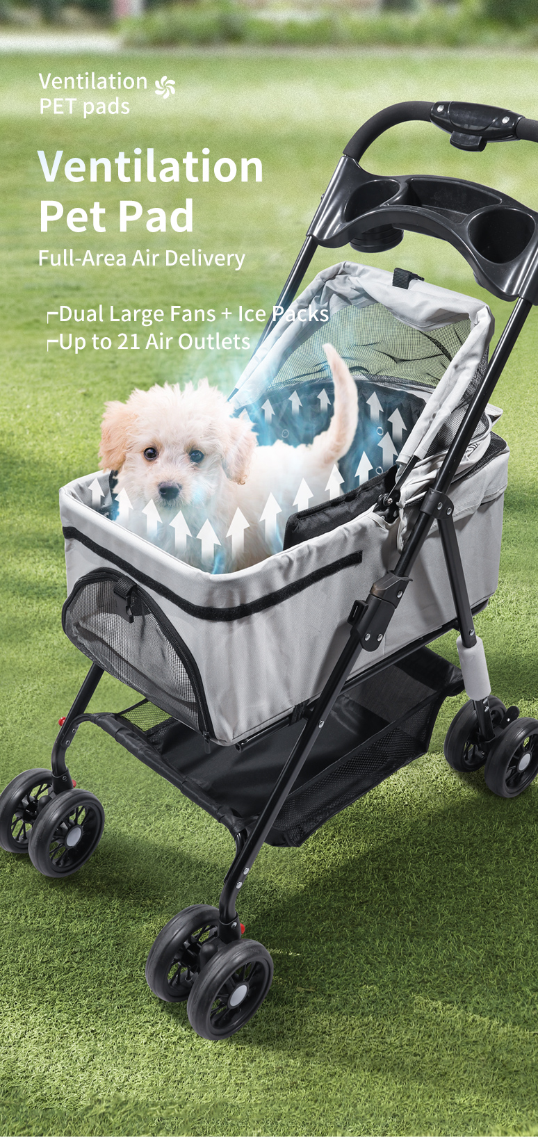 Our cooling pad features built-in 2pcs fan that provides a constant breeze to keep your pet cool and refreshed during stroller rides. Say goodbye to overheating and hello to a happy and comfortable pet.