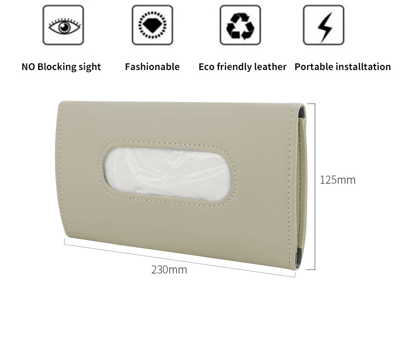The car tissue holder is self-adhesive can be used repeatedly, easy to open, and refill with new tissue; Car visor tissue holder can be used on car visor, car door, center console, dashboard, sunroof, seatback pocket