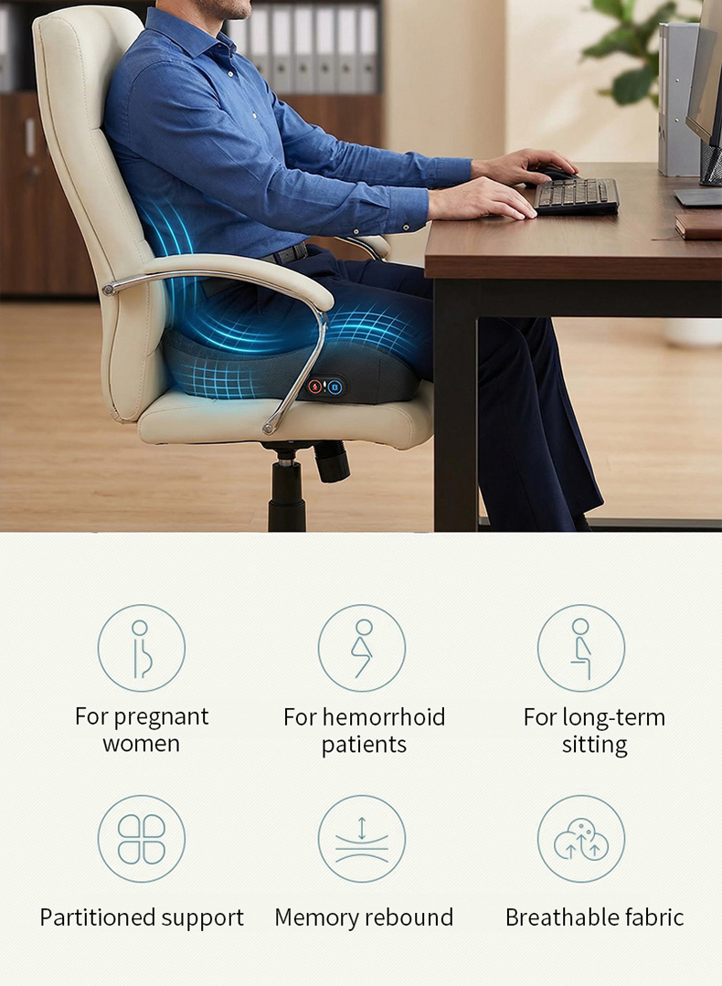3D roller massage & heating, ergonomic memory foam cushion for long sitting comfort